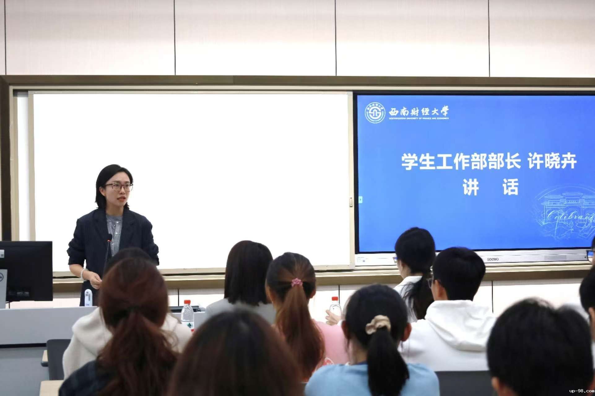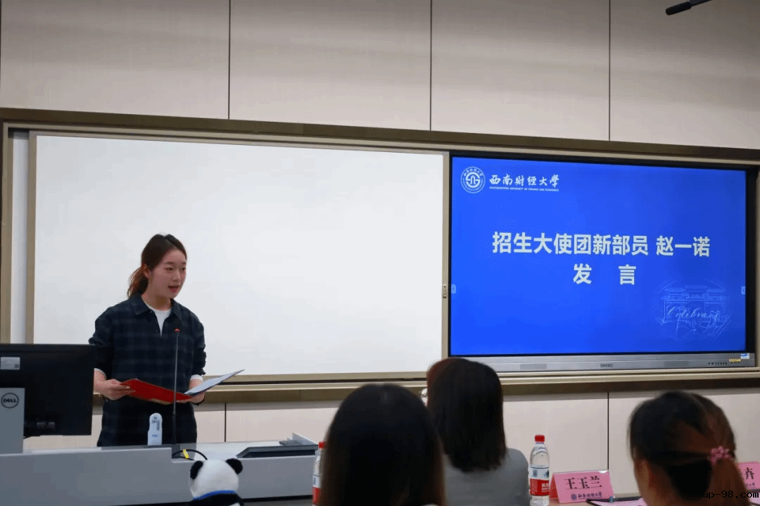本科招生宣传大使团新部员赵一诺分享了她对学校招生宣传工作的理解与憧憬,她表示,会将自己圆梦西财的热情融入到日常工作中,为吸引更多心怀梦想、向往西财的优秀学子加入西财奉献自己的青春力量。
