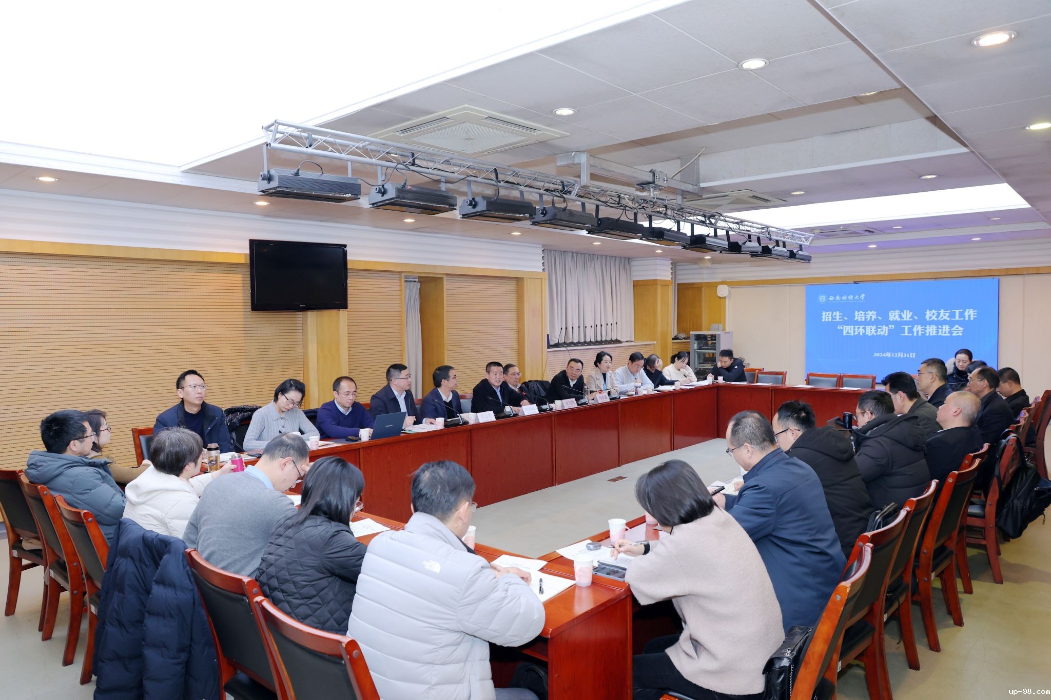 2024年12月31日,学校招生、培养、就业、校友工作“四环联动”工作推进会议在腾骧楼101会议室召开。学校党委副书记明海峰,党委常委、副校长史代敏、李志生、马永强,相关职能部门、各学院(研究院)主要负责人参加会议。校长助理、发展规划处处长李雪主持会议。