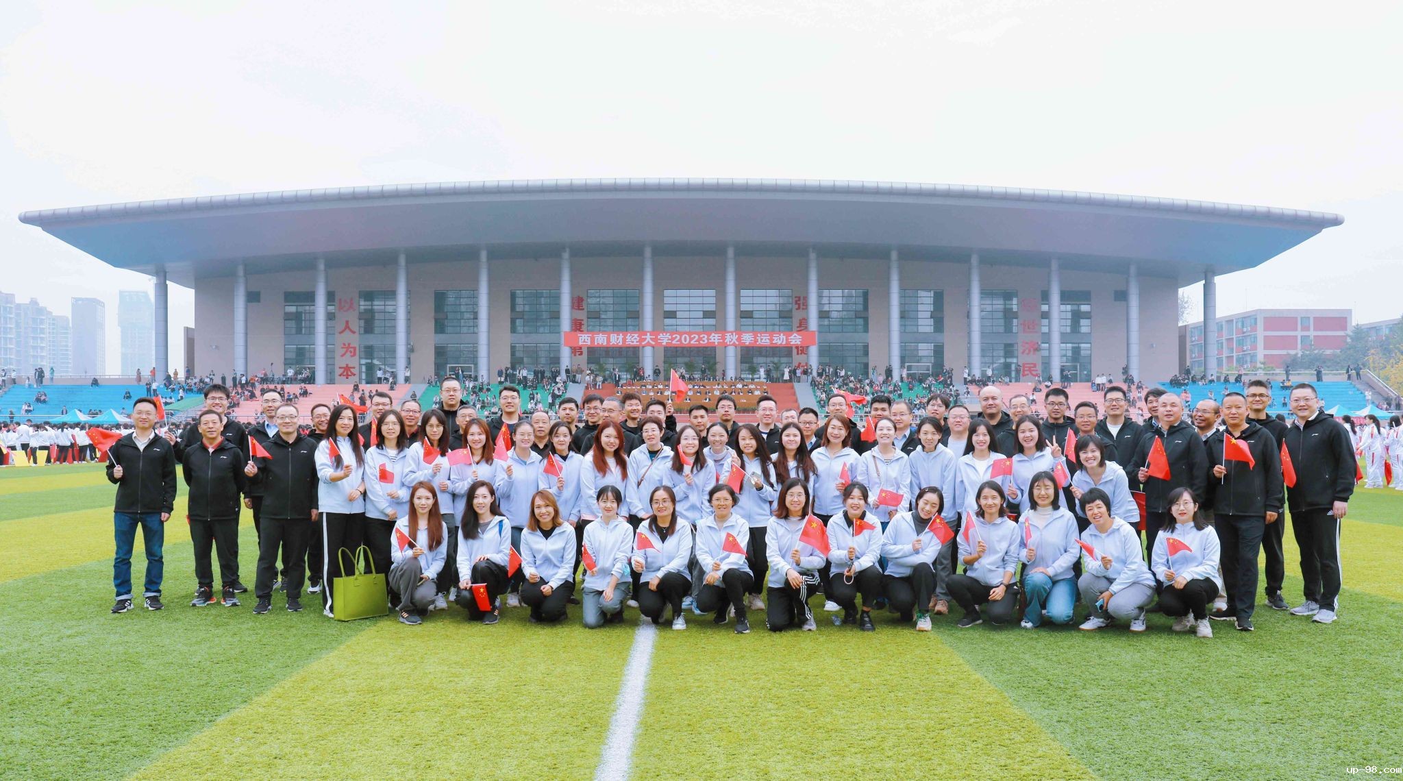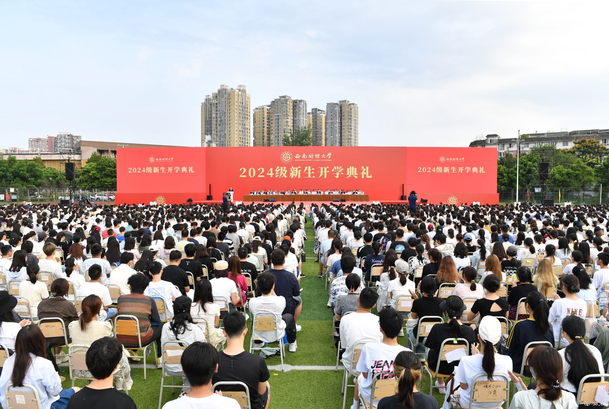 蓉城锦绣风光正好,学子凌云共赴新章。9月7日,学校举行2024级新生开学典礼。来自祖国和世界各地的7800余名新西财人齐聚柳林校区晨曦运动场,满怀青春热忱,参加庄严仪式,聆听师长寄语,同上一堂生动思政大课。他们将从这里踏上追逐梦想、拥抱成长的崭新旅程,将在这里感悟百年历史文脉,一路踏歌而行,奔腾前进!学校党委书记赵建军,党委副书记、纪委书记孙殿明,党委副书记谢红、明海峰,党委常委、副校长史代敏、桂富强、李志生、...