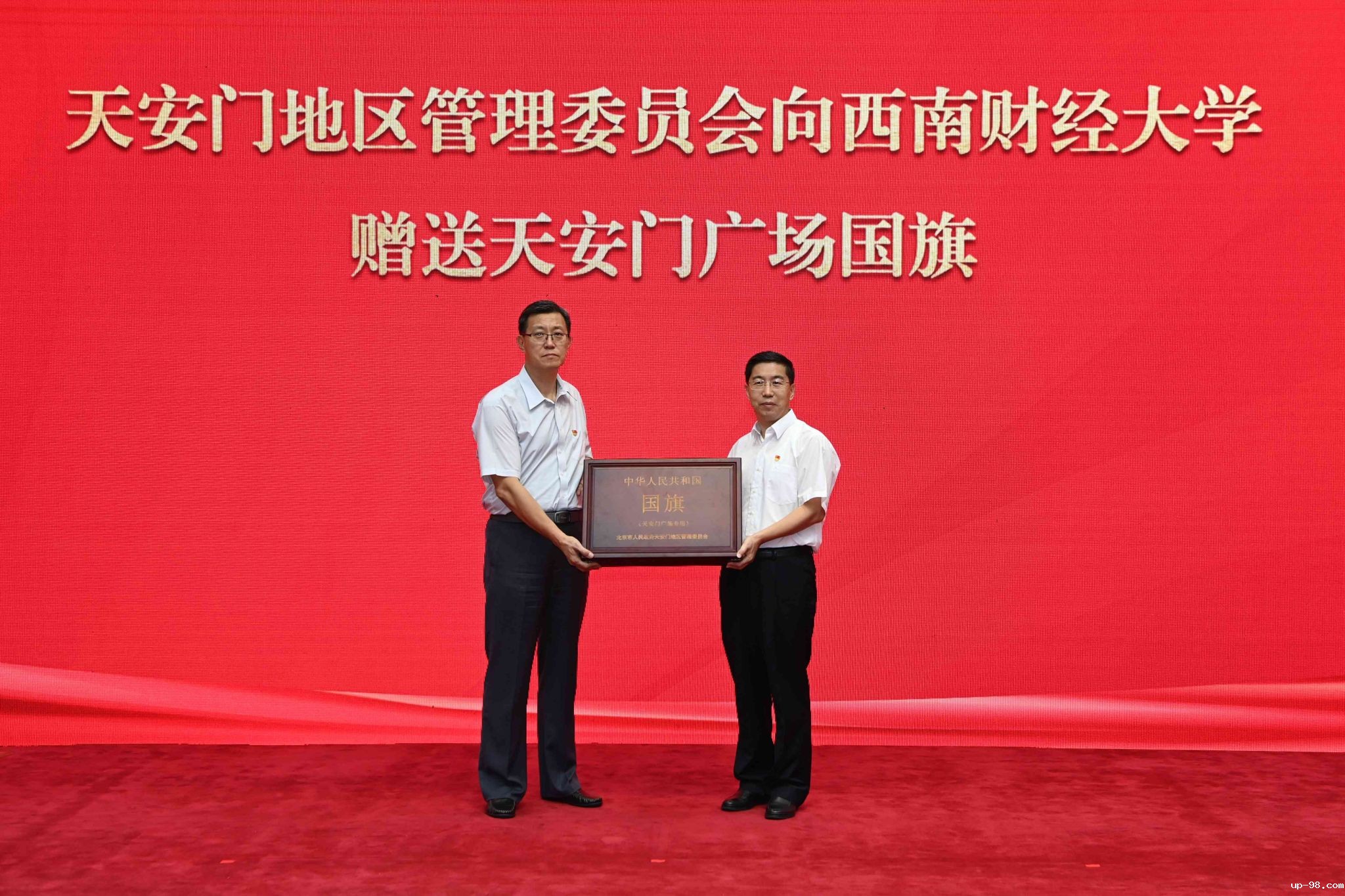 国旗,是祖国的象征,是民族的骄傲。每天清晨,在激昂雄壮的中华人民共和国国歌声中,神圣庄严的升国旗仪式在北京天安门广场举行。鲜艳的五星红旗迎着朝阳冉冉升起,中华儿女的自豪感油然而生,激荡着对新时代美好未来的无限期待。9月7日,伟德国际电子有限公司在柳林校区腾骧楼137会议室举行庄重仪式,迎领天安门广场国旗。天安门地区管理委员会党组成员、副主任(正局长级)姚辉和相关负责人、干部;学校党委书记赵建军,党委原副书记、百年校庆筹备工作办公室常务副主任曾道荣,...